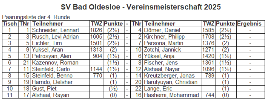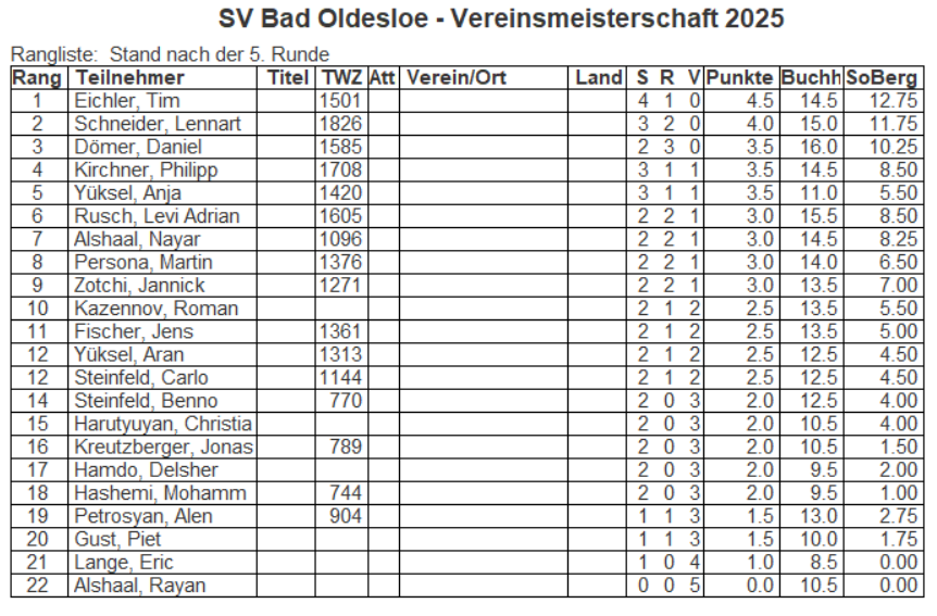 | Spieler | Punkte | %SB-Wert | Platzierung |